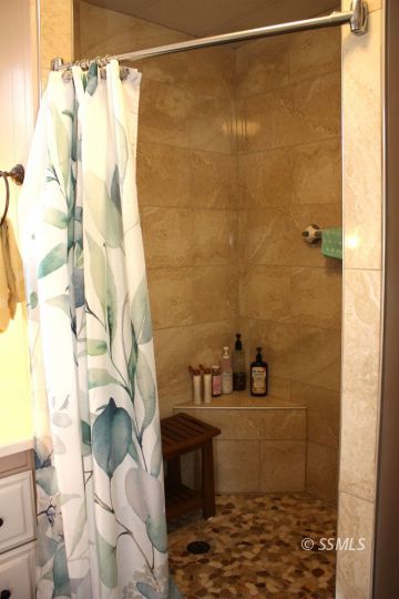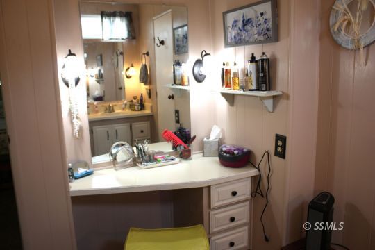 This beautifully updated 3-bedroom, 2-bath home features a thoughtfully designed split-wing floor plan, offering both comfort & privacy. The entryway leads into a spacious living area with brand new carpet, fresh paint, & durable vinyl plank flooring throughout. On one side of the home, you'll find two generously-sized guest rooms & a full bath, while the primary suite, complete with a private en suite bath, is located on the opposite end.The kitchen has been completely updated with sleek new quartz countertops, a modern sink, & updated fixtures. The primary bathroom features a luxurious custom-tiled walk-in shower, dual vanities, & plenty of storage. Two master cools & pellet stove, just 3 years old, adds a cozy touch. Indoor laundry is just off the kitchen.Step outside to a large covered redwood deck, perfect for entertaining or relaxing, with stunning mountain views & vinyl fencing, misters for added comfort & has a wheelchair ramp leading to the back patio area.The entire property is secured by vinyl fencing, with additional amenities including a covered carport and two storage sheds.This home is equipped with a backup generator . Located in a well-maintained 55 plus park.